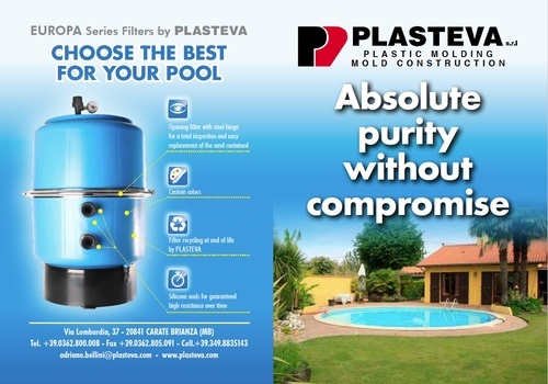 In particolare, Plasteva Srl distribuisce il filtro Europa in tecnopolimero, un prodotto studiato per un uso intensivo nelle piscine, grazie al quale la sanificazione dell’acqua è garantita dall’efficienza della tecnologia impiegata.